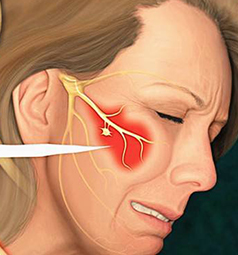 疾病百科/ 三叉神经痛 简介三叉神经痛是指在三叉神经分布区内短暂的反复发作性剧痛。 高发人群:45岁以上中老年人 典型症状:面部或下颌的某一点针刺、撕裂、烧灼电击样剧烈…[详情] 百科 典型症状 危害解读 主要原因 症状自测 选择医院 预约挂号 怎么康复 做哪些检查 更多>> 治疗 治疗方法 微创治疗 手术开刀 中医效果 药物治疗 治疗费用 大概疗程 是否住院 更多>> 医师团队/ 30余年临床经验 王学勤精神心理科主任 评分:9.9咨询量:4893 擅长:中西医结合治疗各类面瘫、三叉神经痛、面瘫后遗症等...[详情] 预约挂号 张艳萍主任医师 评分:9.8咨询量:5512 擅长:辨证治疗急慢性面瘫、三叉神经痛、面肌痉挛、面神经炎等...[详情] 预约挂号 彭亮副主任医师 评分:9.8咨询量:2212 擅长:中西医结合治疗各类面瘫、三叉神经痛、面瘫后遗症等...[详情] 预约挂号 治疗科普/ 不同病症治疗 手术利用CT或 “C”形臂等影像引导定位治疗更加精细和安全...[详情] 适用人群 Intended for 中老年/高龄患者 反复发作的患者 药物无效患者 手术效果不佳 久治不愈患者 是否适合我? 治疗过程 Treatment process 1.CT影像定位 2.针孔穿刺治疗 3.微创口处理 微创口 时间短 费用少 痛苦小 风险低 还想了解 Consultation 药物治疗 会不会复发? 副作用大吗? 在线咨询 开放性手术 风险有多大? 住院要多久? 在线咨询 中医治疗 治疗需多久? 效果不稳定? 在线咨询 易混淆疾病/ 三叉神经痛 三叉神经痛 三叉神经炎 牙痛 舌咽神经痛 面部神经痛 枕大神经痛 眶上神经痛 非典型面痛 偏 头痛 24小时电话预约挂号 点击免费咨询 热点关注/ 三叉神经痛 不同症状分析 三叉神经痛反复发作 治疗效果对比 三叉神经痛手术 治疗效果好吗 左脸刺痛胀痛 治疗三叉神经痛多少钱 三叉神经痛 三叉神经痛能自愈吗 三叉神经痛 怎么治疗 如何选择医院 止痛药没效果 能彻底治好么