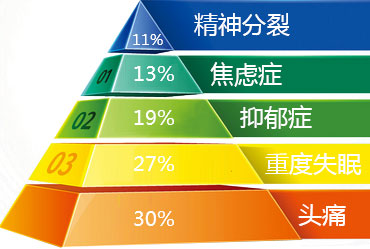 多巴胺(Dopamine)值少,5-羟色胺(5-HT)值过多,神经长期处于紧张状态,伴有头痛、失眠,临床诊断为神经衰弱。